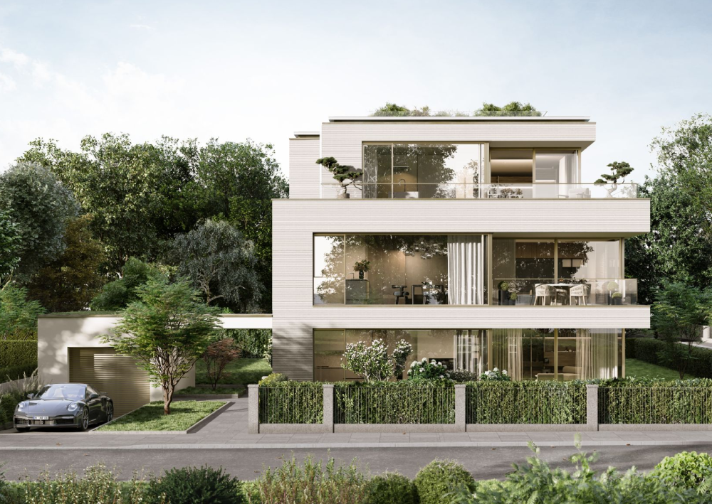 Am idyllischen Normannenplatz in Bogenhausen entsteht eine elegante Mehrfamilien-Villa, die Ruhe, Exklusivität und modernes Design vereint. Jede der nur drei Wohneinheiten nimmt eine gesamte Etage ein und öffnet sich mit großzügigen Glasflächen zum Grün des Normannenparks – ein Wohngefühl, das Weite und Geborgenheit zugleich schenkt.